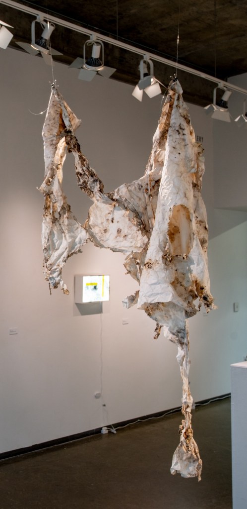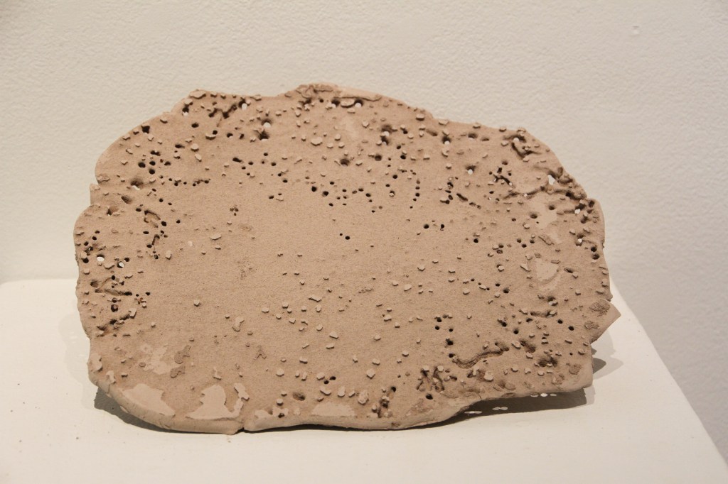 Taking our exploration even further, we subjected the fabric to the elements, exposing it to Georgia’s scorching July weather, including nightly storms and relentless sunshine. After an additional 30 days, the fabric emerged tattered, brittle, and adorned with natural traces, culminating in what we call “One Piece.”